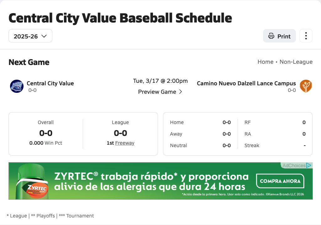 Central City Value Baseball Roster